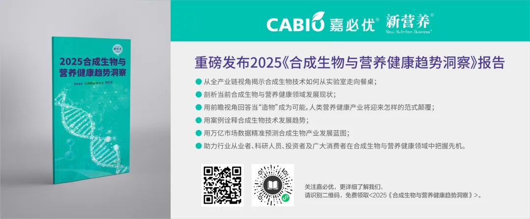 今天,《合成生物與營養(yǎng)健康趨勢洞察》報告在2025年新營養(yǎng)大會上正式發(fā)布,同時上線“競合島”小程序和嘉必優(yōu)官微。讓我們共同期待合成生物學(xué)在營養(yǎng)健康領(lǐng)域創(chuàng)造更多的奇跡,重塑未來營養(yǎng)科學(xué)。